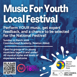 Our Local Event will take place at Coombeshead Academy, Newton Abbot on Sunday 22 March with sessions running from 10am-12pm, 1-3pm, and (subject to demand) 4-6pm. We will showcase performances from selected group music-making activities, including schools, Hub-supported partner organisations and County Groups. Groups of home-educated and EOTAS learners are also welcome to apply via a nominated responsible adult (parent/carer) or Hub-supported partner organisation able to support safeguarding and attend the event. Performances can span every level of experience and/or ability and across every genre of music and ensemble type. We’re asking each group to perform for up to 15mins to their peers and an audience of parents/carers.